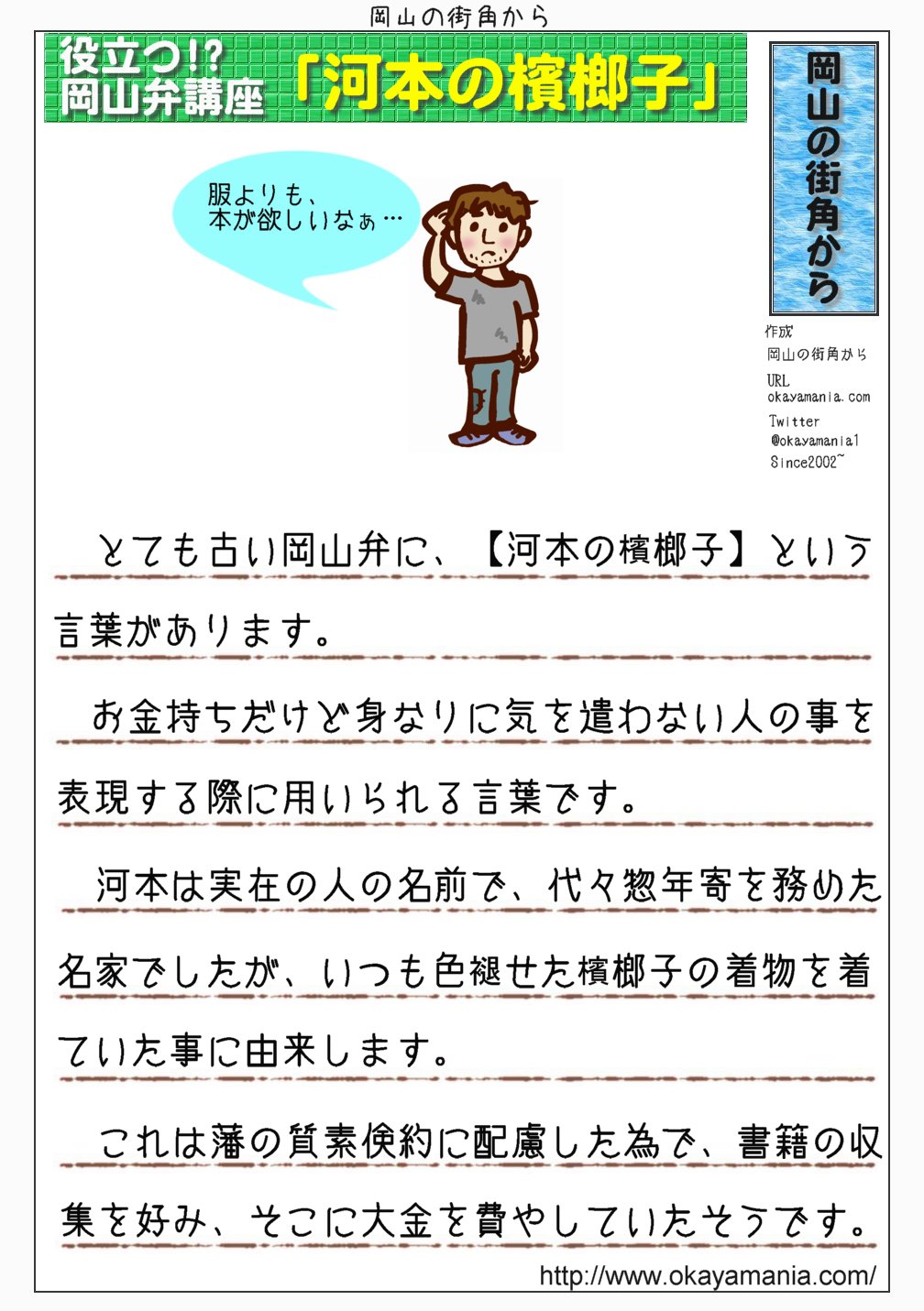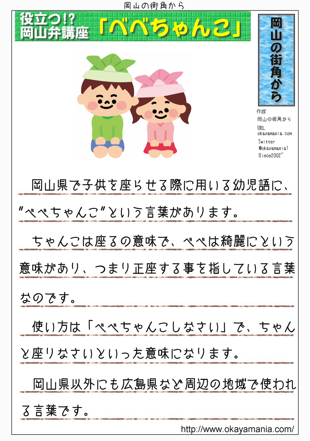 SNS上の反応から、現在では余り使われなくなったのかな?という古い岡山弁を【懐かしの!?岡山弁講座】として、別にまとめてみました。