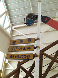 看板、一番上の弁慶号はレンタルで下津井電鉄へやってきた小型蒸気機関車の下工弁慶号です。