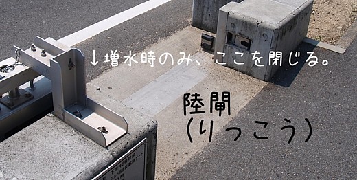 陸閘(りっこう)というもので、高潮の増水時に出入り口を封鎖する事で、海水が住宅地へ流れ込むのを防ぐ緊急時に用いる堤防のようなものです。
