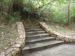 この階段の先がどこへ向かう予定だったのかは判りませんが、仮にこの階段の先が直線的に進むとすると、単に駐車場へ戻るだけです。