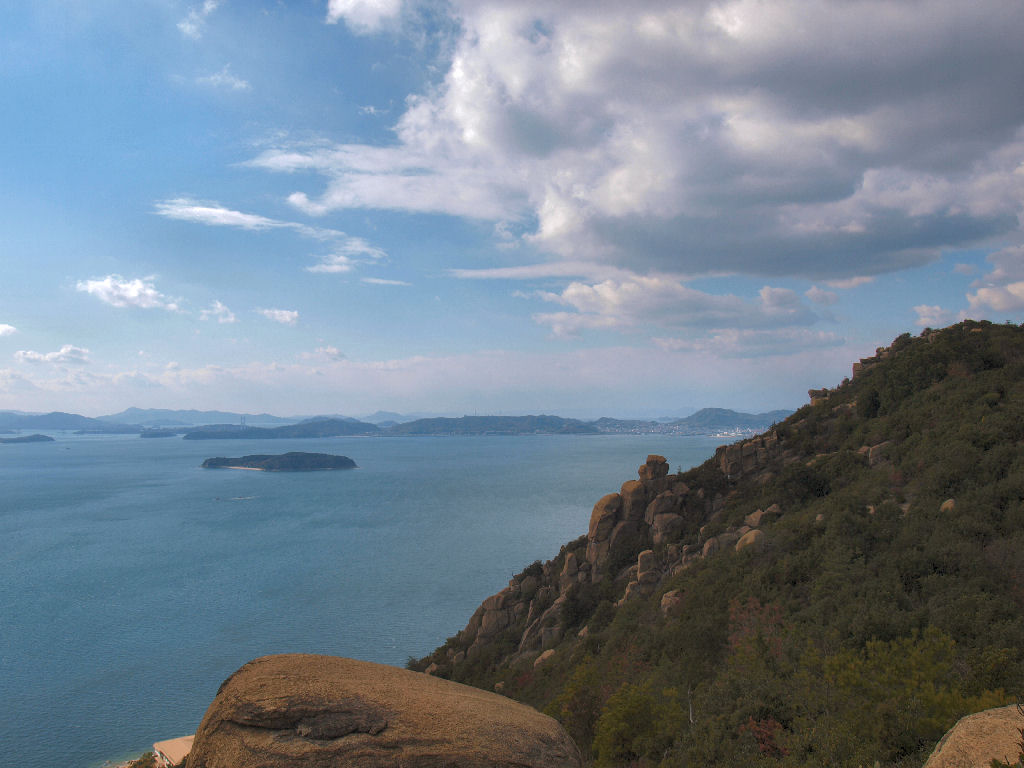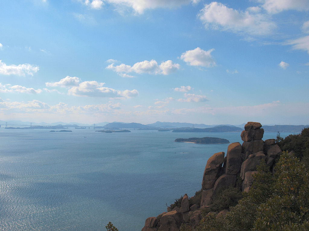 王子が岳の特徴でもある、絶妙なバランスの岩と瀬戸内海です。
