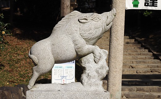 境内には狛犬ではなく狛猪がいます。